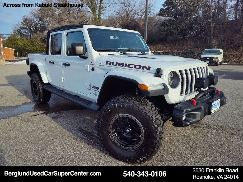 2020 Jeep Gladiator Rubicon â" 4WD, V6 3.6L Gasoline â" located in Roanoke, VA. This rugged, CARFAX Clean Reportâ"verified Jeep Gladiator Rubicon blends serious off-road capability with refined comfort. Powered by a proven 3.6L V6 and full-time 4WD, it handles trails, mud, and highway cruising with confidence. The Rubicon trim includes heavy-duty axles, locking differentials, rock rails, and trail-ready suspension for maximum capability when the route gets rough.