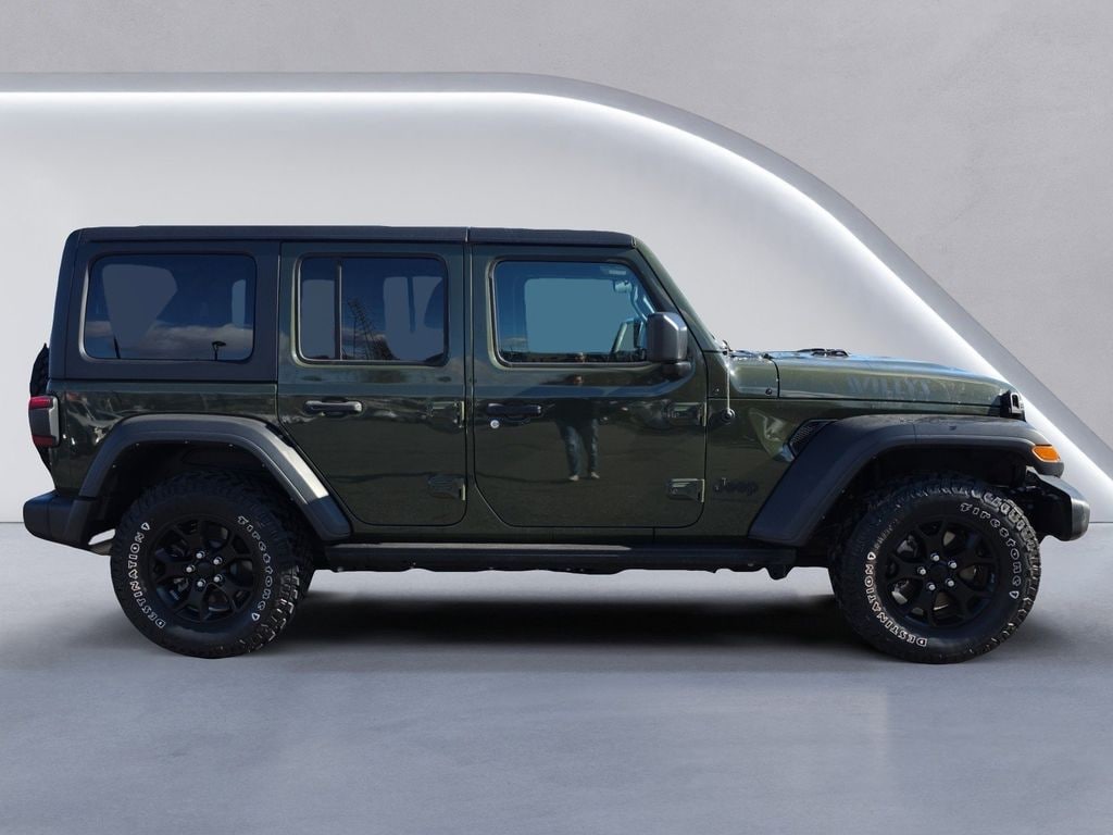 - Quick Order Package 22W Willys: Willys; Mold in Color Bumper with Gloss Black; Speed Sensitive Power Locks; Automatic Headlamps; Deep Tint Sunscreen Windows; 4-Wheel Drive Swing Gate Decal; Black Grille; MOPAR All-Weather Floor Mats; Willys Hood Decal; Rock Protection Sill Rails; LT255/75R17C Tires; Front 1-Touch Down Power Windows; Anti-Spin Differential Rear Axle; Power Heated Mirrors; Premium Wrapped Steering Wheel; Security Alarm; Remote Keyless Entry; Sun Visors with Illuminated Vanity Mirrors