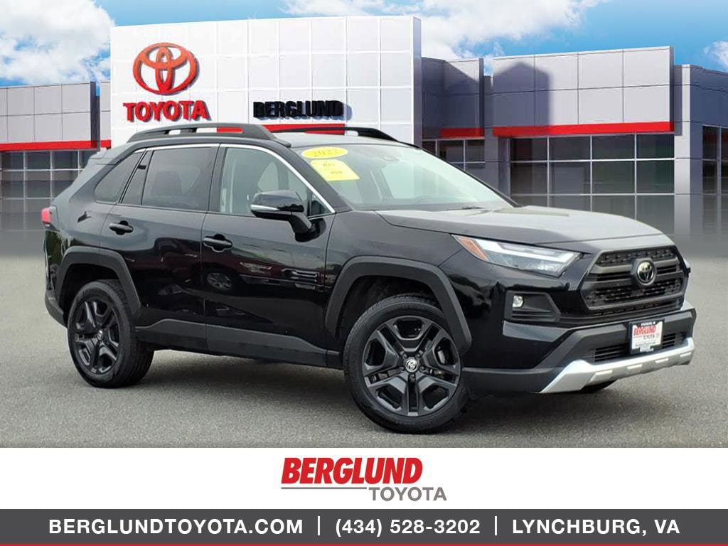 2022 Toyota RAV4 Adventure AWD - located in Lynchburg, VA. This rugged yet refined crossover pairs a reliable 4-cylinder 2.5L gasoline engine with Toyota's capable all-wheel-drive system to handle daily commutes and weekend escapes with confidence. The Adventure trim adds a bold exterior presence and practical features that elevate both utility and comfort. Inside, enjoy modern connectivity through Apple CarPlay and Hands-Free Bluetooth for seamless smartphone integration and safer calling on the road. Automatic Climate Control maintains a comfortable cabin environment for driver and passengers, while the Back-Up Camera and Cross-Traffic Alert boost awareness and help prevent collisions in crowded parking situations. This Toyota RAV4 Adventure offers a versatile interior with durable materials and smart cargo solutions-perfect for active lifestyles, family errands, or road trips. The suspension and AWD deliver composed handling across varying road surfaces, and the Adventure's design cues emphasize a tougher, off-road-ready aesthetic without sacrificing everyday usability. Located in Lynchburg, VA, this pre-owned 2022 Toyota RAV4 Adventure is a great option if you're seeking a dependable, well-equipped SUV built for versatility and modern convenience. Contact us to schedule a test drive and see why this Toyota RAV4 stands out in its class.