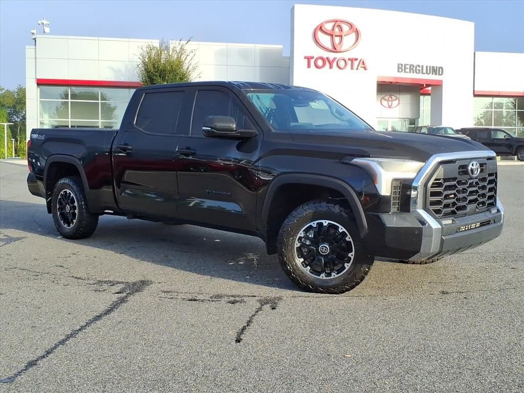 The rear parking assist technology on it will put you at ease when reversing. The system alerts you as you get closer to an obstruction. The Toyota Tundra comes equipped with Android Auto for seamless smartphone integration on the road. The leather seats in this unit are a must for buyers looking for comfort, durability, and style. Keep your hands warm all winter with a heated steering wheel in this unit . An off-road package is equipped on the Toyota Tundra. This vehicle has a clean CARFAX vehicle history report. Start this vehicle from inside with remote start. Apple CarPlay: Seamless smartphone integration for this vehicle - stay connected and entertained on the go! Protect this vehicle from unwanted accidents with a cutting edge backup camera system. This vehicle is a certified CARFAX 1-owner. This Toyota Tundra offers Automatic Climate Control for personalized comfort. The vehicle's blind spot monitor enhances safety.